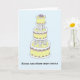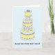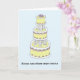 Um bolo saboroso, multicanado, colorido pastel e as palavras Feliz Aniversário de Casamento" em russo sob a imagem.