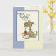 Um cachorro fofo está pronto para apagar a vela de aniversário! Diversão e cartão simples para qualquer um.