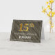 A frente deste elegante e respeitável design de cartões de saudação de aniversário apresenta um grande número ordinal "15" com um olhar inspirado em imitação/falsa ouro, a mensagem "HAPPY 15 BIRTHDAY", um nome de destinatário editável, e um padrão de borda que consiste em linhas finas, sobre um fundo de padrão inspirado em madeira falsa/imitação. O dentro apresenta uma mensagem de saudação de aniversário personalizada, ou talvez possa ser apagado e deixado o vazio se uma mensagem for escrita manualmente. Um cartão de cumprimentos de aniversário personalizado como este pode ser uma maneira elegante de enviar cartões de aniversários a alguém que comemora seu décimo quinto aniversário. [~Z0000492]