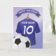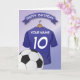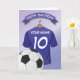 Jovens personalizados cartões de aniversário felizes com um fundo azul claro desbotado e uma camisa de futebol azul real que você pode personalizar com o nome e a idade da criança, e uma bola no fundo. Este cartão de aniversário feliz de futebol vai impressionar o aniversariante seja seu filho/filha, sobrinho/sobrinha, neto/netinho ou amigo, literalmente qualquer um que esteja louco! Não se esqueça de adicionar sua mensagem especial dentro no cartão!