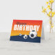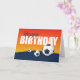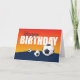 Cartão Aniversário do futebol no Atleta Azul e Laranja