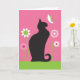 Aceite o encanto adorável do nosso Cartão de Saudação de Aniversário Bonito com uma ilustração original do Mango Moon Studio. Essa carta deliciosa mostra um gato preto elegante, cativado pela dança caprichosa de uma borboleta contra um pano de fundo cor-de-rosa enfeitado com flores retrorreflectoras. É uma sinfonia visual de beleza e alegria que certamente iluminará o dia especial de qualquer um. Dentro, a saudação de aniversário é um doce e simples - Feliz aniversário!