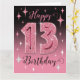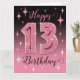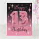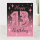 Cartão Aniversário do Grande 13 Rosa Glitter