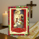 Celebre o Aniversário do Sacerdócio com esta linda imagem de um padre católico celebrando a Missa no Altar com Jesus colocando uma coroa em sua cabeça. Dentro há um versículo da Escritura da Missa com um versículo opcional interno. Rosas Vermelhas bordam o cartão.