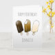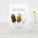 Cartão de aniversário para crianças com ilustrações de picolés de sorvete deliciosos. O Cartão de Aniversário seria perfeito para um aniversário realizado num dia quente.