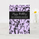 Cartão de aniversário para vizinho com flores roxas e pretas modernas design e verso pensativo.
