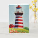 Um farol vermelho e branco listrado na praia. Cartão de aniversário para o avô. O texto pode ser personalizado para dizer qualquer nome ou membro da família.