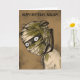 Os aniversários podem ser assustadores. Envie seu fã favorito de monstros e filmes de terror um cartão de aniversário personalizado legal e assustador. Este cartão de saudação ilustra uma múmia, uma zumbi em bege, preta e verde-oliva contra um fundo castanho-claro. Este cartão está pronto para ser personalizado com sua própria escolha de mensagem na frente e na dentro para criar um cartão personalizado para aniversários ou qualquer ocasião.