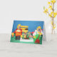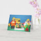 Este cartão de aniversário apresenta recuperadores de ouros vestidos como personagens de brinquedos de blocos construtivos num mundo de brinquedos. São jardineiros com um carrinho de rodas e um pedaço de flores. O texto diz: "Construa a si mesmo um mundo bonito. Feliz aniversário!"