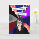 Engraçado cartão de amizade humorístico só dizendo Feliz Aniversário. Bonito garota gótica com cabelo azul e fundo de pop retrô.