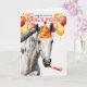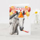 Os desejos de aniversário com senso de humor de cavalo estão sendo enviados para o amante de cavalos quando você escolhe este cavalo árabe de Cinza de maçã em um chapéu de aniversário com balões.