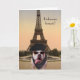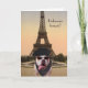 Cartão customizável com um cão de Bull em uma boina (BadDogHats.com) na frente da torre Eiffel (PublicDomainPictures.) Você pode personalizar. Agora na parte externa diz você fala o francês? Dentro dele diz o feliz aniversario. Você pode ir ao googletranslate e obter uma outra frase francesa. Você pode mudar o texto, as pias batismais, o tamanho de pia batismal e a cor da pia batismal. O cão de Bull é obrigados aos publicdomainpictures.