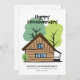 Esses cartões planos modernos de Aniversário da Casa do Cliente apresentam um design desenhado de uma casa de madeira fofa com árvores. Uma área de texto é fornecida para o nome da sua empresa imobiliária e informações de contato. O verso é em branco com muito espaço para a sua mensagem pessoal ao seu cliente. Perfeito para Corretores de Imóveis, Construtores, Arquitetos e Designers de Interiores.