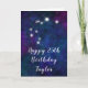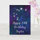 Este cartão de aniversário cósmico e celeste pode ser personalizado com um nome ou título como mãe, filha, neta, sobrinha, amiga, etc. A design apresenta a constelação do Aquarius zodiac sobre um fundo da galáxia azul-escuro e roxa-d-água com estrelas dispersas. O texto combina o script manuscrito e as fontes serif modernas para um aspecto na moda e clássico. Isso é perfeito para qualquer pessoa interessada em sinais estelares e astrologia.