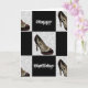 Mande a alguém um feliz aniversário com este cartão único. Imagens de abstrato alto salto com Feliz Aniversário em fonte divertida. Perfeito para a moda em sua vida