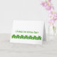 Trevos verdes em cartão bilíngue com a inscrição em gaélico Aniversário Feliz: lá breithe shona duit na frente e Feliz Aniversário em irlandês no interior. Arte original de WindyDesign, Criador da Zazzle.