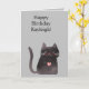 Cartão Aniversário Gato Coração Rosa Preto Cinza