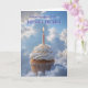 Lembrando de uma amada e tardia mãe no seu aniversário. Um bonito cupcake se senta nas nuvens com uma vela e palavras de conforto e amor.