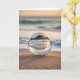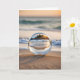 Bola de vidro numa praia com reflexo costeiro. O texto dentro é editável.