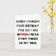 Eu vi as palavras agora e isso me fez pensar em algo nos moldes de como eu lamento ter esquecido seu aniversário, mas, é melhor eu dizer outras coisas para me preocupar. E eu pensei que seria engraçado ter a palavra melhor com uma marca achasse que alguém tinha cometido um erro e a riscado. Tentei ser engraçado com este cartão, mas não tenho certeza se funcionou. O texto pode ser editado e a cor da linha vermelha também pode ser editada.