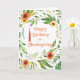 Comemore um aniversário juntos no Dia de Ação de Graças com este cartão. Uma coroa rodeia o desejo de aniversário e Ação de Graças, com flores laranja, ferrugem e ouro amarelas. Uma vela de aniversário está pronta para explodir!