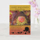Aniversário no Halloween, Scarecrow e Poem. Cartão de saudação em papel. Espantalho folclórico com chapéu de malha, vassoura feita à mão e rosto pintado. As mães enchem o fundo. Um poema de outono/outono está escrito na parte inferior. Arte, imagem e direitos de autor © Shoaff Ballanger Studios.