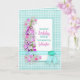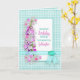 Lindas flores de jardim em fundo xadrez azul turquesa/aqua com alguns tons de rosa no texto. Este design estará disponível para muitas categorias diferentes em aniversários, juntamente com outros cartões, como agradecimento, convites, pensando em você, etc. Fita com gema falsa para um apelo adicional. Cartão projetado digitalmente para um efeito mais realista.