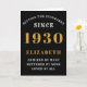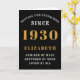 Para aqueles nasceres em 1930 e comemorando seu aniversário temos o cartão de aniversário ideal. O fundo preto com design branco e de ouro é simples, mas elegante. Personalize facilmente o texto na frente e no interior deste cartão de aniversário usando o modelo fornecido. Parte da faixa de padrões de configuração de cartões de saudação.