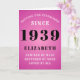 Cartão Aniversário Personalizado 1939 Cor-de-Rosa Adicion