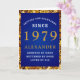 Cartão Aniversário Personalizado 1979 Nome Azul Dourado d