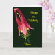 Fotografia da flor da columbina vermelha e vibrante Cartão de aniversário. Você pode alterar ou adicionar qualquer texto que desejar para um toque mais pessoal, bem como alterar o tamanho da fonte, o estilo e a cor.