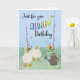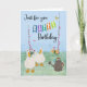 Este é um cartão de aniversário fofo, com dois patos a andar debaixo de uma linha de roupas com a faixa que completa o texto, "Apenas para você, Feliz Aniversário.