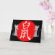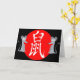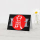 Caractere chinês para signo do zodíaco Rato e roedor de desenho animado branco sobre vermelho e preto.