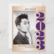 Cartões de anúncio de graduação elegantes e modernos, design com melhor fotografia vertical (ou retrato) do formando e ano de graduação em negrito com tamanho excessivo, com três linhas personalizadas para nome, faculdade ou escola e ano sobre fundo de ouro fino metálico. O verso apresenta outra fotografia e mais detalhes sobre o seu formando. Um elegante cartão de anúncio da graduação MASCULINE com um design moderno e sofisticado que permite que sua foto favorita brilhe!