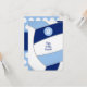 Este cartão de aniversário de vôlei apresenta a imagem realista de um vôlei azul escuro e claro que superdimensiona de forma abstrata na frente do cartão - um padrão de bolinhas giro de volichões brancos sobre fundo azul claro acentua o topo e o fundo das costas do cartão - texto personalizável em letra divertida e manuscrita é para o aniversário de um atleta de vôlei, mas pode ser personalizado para expressar parabéns ou para qualquer ocasião por katz_d_zynes