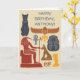 Conhece alguém que é quase velho o suficiente para ser considerado antigo? Este cartão de aniversário com diferentes ilustrações antigas do estilo egípcio é uma escolha perfeita. A mensagem na frente e no dentro pode ser personalizada com seu próprio texto. Minhas ilustrações retratam o deus Dente, a deusa do gato Bastet, o escaravelho sagrado, o sinal da vida, Rainha Nefertiti, Rei Tut, Anubis e mais. As ilustrações estão em tons de azul, laranja, vermelho, amarelo e marrom nesse cartão colorido de areia.