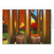 Depois do vento, um solteiro caiu, as folhas caíram sobre uma espinha silenciosa. No chão, sob a grama verde-estável, coberto com folhas amarelas e vermelhas. Ao fundo, um creme e um pomar de outono de ouro refletem suas cores nos bares prateados do quime.