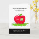 Um cartão do dia de apreciação do professor bonito com uma fotografia de um pequeno verme bobo numa maçã vermelha brilhante, vestindo um boné de formatura e possuindo um diploma. O texto principal diz: Você é o melhor professor que eu já tive. Eu te dou um A+.