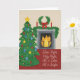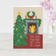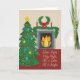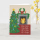 Este cartão de Natal apresenta um retrato aquoso de uma confortável sala de Natal com as letras da Noite Silenciosa.