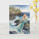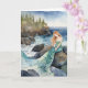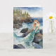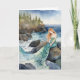 Sereia de aquarela em uma rocha oceânica com água em aqua mole e cor azul para pensar em você. A mensagem dentro pode ser alterada.