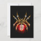 Aranha mecânica, com pá-pá de ouro, engrenagens de latão e uma lâmpada de vidro vermelha sobre fundo preto. Estilo Steampunk.