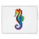 Articulação artificial, brilhante, arco-íris, cavalo de mar poligonal sobre fundo branco. Tatuagem brilhante.