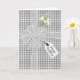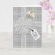 Arco branco com margarida branca, hálito de bebê e etiqueta de presente no padrão de gingham de cinza branca e prata. Todo o texto pode ser alterado.