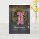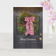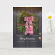 Uma grinalda de Natal com frutas vermelhas e um arco xadrez vermelho e branco está pendurado em uma porta preta. Uma foto divertida e festiva para a temporada de férias. Feliz Natal é a frase na frente, ou mude ou exclua-a. Uma foto menor se repete no interior com Felizes Festas ou exclua ou mude essa frase. Outra opção é adicionar seu nome personalizado ou nome da família dentro.