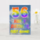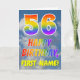 Este design de carta de saudação de 56 anos, divertida e colorida, apresenta uma representação de um céu azul com nuvens, juntamente com um grande número "56" e a mensagem "FELIZ BIRTHDAY", tendo um espectro de gradiente inspirado no arco-íris, na frente. A frente também apresenta um nome de destinatário personalizável. O dentro apresenta uma mensagem de saudação de aniversário personalizada, ou talvez possa ser apagado e deixado vazio se uma mensagem for escrita manualmente. Um cartão de aniversário personalizado como este pode ser uma maneira divertida de enviar uma mensagem em comemoração dos cinquenta e seis anos de alguém. [~Z0000371]