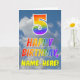 Este design de saudação de aniversário de 5, divertido e colorido, apresenta uma representação de um céu azul com nuvens, juntamente com um grande número "5" e a mensagem "FELIZ BIRTHDAY", tendo um espectro de gradiente inspirado no arco-íris, colorir o padrão de gradiente, na frente. A frente também apresenta o nome personalizado do destinatário do cartão. O dentro apresenta uma mensagem de saudação de aniversário editável, ou talvez pudesse ser apagado e deixado o vazio se uma mensagem fosse escrita manualmente. Um cartão de aniversário personalizado como este pode ser uma maneira divertida de enviar desejos de aniversário a alguém que comemora seu quinto aniversário. [~Z0000371]