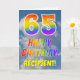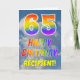 Esta divertida e colorida design de 65 anos de saudação de aniversário apresenta uma representação de um céu azul nublado, juntamente com um grande número "65" e a mensagem "FELIZ BIRTHDAY", tendo um espectro de gradiente inspirado na cor do padrão de gradiente, na frente. A frente também apresenta o nome personalizável do destinatário do cartão. O dentro apresenta uma mensagem de saudação de aniversário personalizada, ou talvez possa ser apagado e deixado vazio se uma mensagem for escrita manualmente. Um cartão de aniversário personalizado como este pode ser uma maneira divertida de enviar desejos de aniversário a alguém que comemora seu sexagésimo quinto aniversário. [~Z0000371]