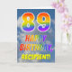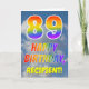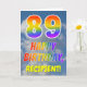Esta divertida e colorida design de 89º aniversário apresenta uma representação de um céu azul nublado, juntamente com um grande número "89" e a mensagem "FELIZ BIRTHDAY", ter um espectro de gradiente inspirado no arco-íris para colorir padrões de gradiente, na frente. A frente também apresenta o nome personalizável do destinatário do cartão. O dentro apresenta uma mensagem de saudação de aniversário personalizada, ou talvez possa ser apagado e deixado o vazio se uma mensagem for escrita manualmente. Um cartão de aniversário como este pode ser uma maneira divertida de enviar desejos de aniversário a alguém que comemora seu oitenta e nono aniversário. [~Z0000371]