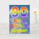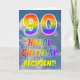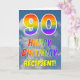 Este design de saudação de aniversário de 90, divertido e colorido, apresenta uma representação de um céu azul nublado, juntamente com um grande número "90" e a mensagem "FELIZ BIRTHDAY", tendo um espectro de gradiente inspirado na cor do padrão de gradiente, na frente. A frente também apresenta o nome personalizado do destinatário do cartão. O dentro apresenta uma mensagem de saudação de aniversário editável, ou talvez pudesse ser apagado e deixado o vazio se uma mensagem fosse escrita manualmente. Um cartão de aniversário personalizável como este pode ser uma maneira divertida de enviar uma mensagem em comemoração do nonagésimo aniversário de alguém. [~Z0000371]