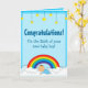 Um belo cartão de saudações de parabéns com um adorável design digital de um bebê adormecido debaixo de um arco-íris e amontoado em algumas nuvens brancas lisas. Com as palavras "Parabéns! No nascimento do seu novo bebê!" Você pode personalizar o texto para o que quiser e o dentro é vazio para sua própria mensagem.